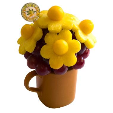 A boldogság receptje ez a fantasztikus kompozíció, mely ananász- és mangóvirágból, valamint szőlő vagy eper alapból áll. Nemcsak jókedvűek, de egészségesek is leszünk tőle, ha ezt fogyasztjuk legalább hetente egyszer. Kérjük megrendeléskor jelezze, hogy eper vagy rosé szőlő alappal kéri a csokrot.